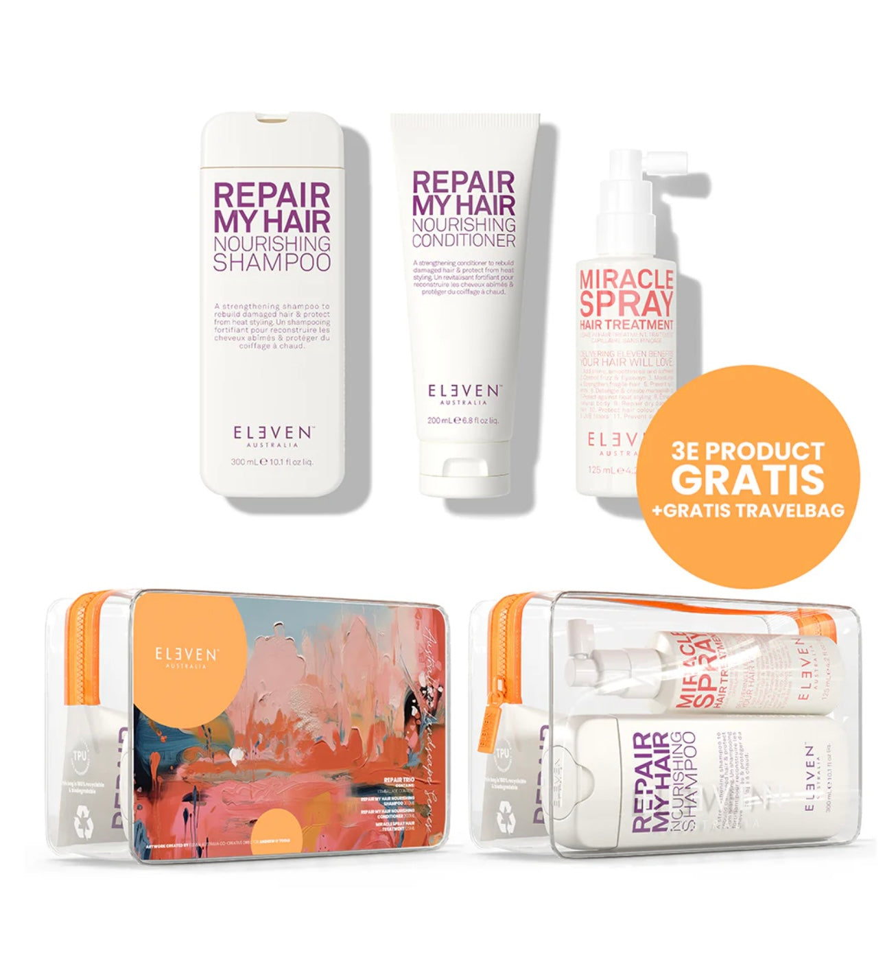 Wanneer je het Repair Trio aanschaft, krijg je de beauty bag en het Miracle Spray Hair Treatment 125 ml t.w.v. €22,35 GRATIS!